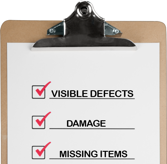 visible defects, damage, or missing items.